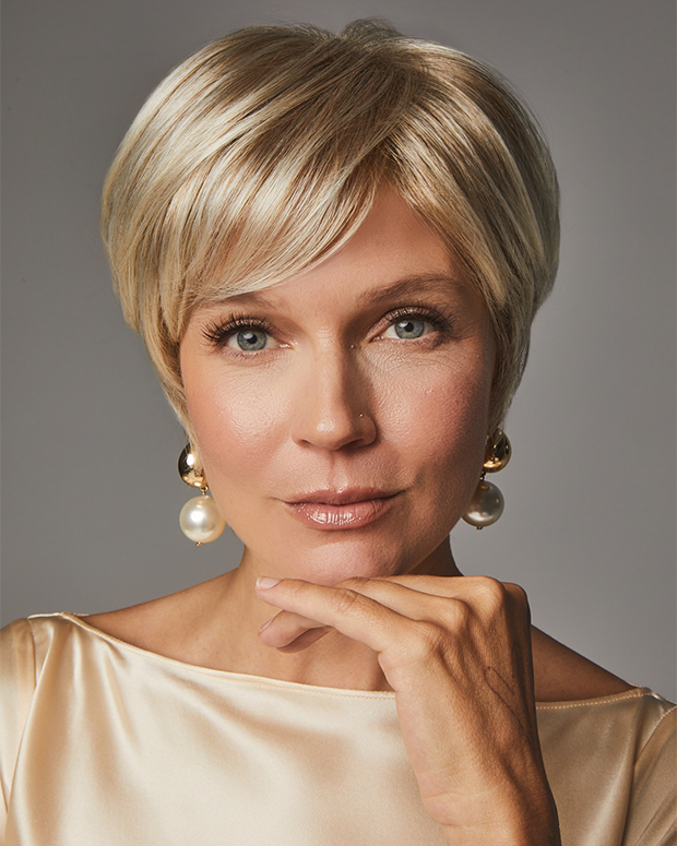 Elegant appeal in a picture-perfect look. Semi-wedge bob with a tapered back. Long, full bangs to frame the face. Light-weight and lovely. Noriko is well known for their innovative air brushed colors. Only one available at this price.