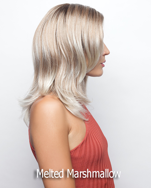 Auburn Sugar R - Medium Auburn with Light Blond and Light Auburn Highlights and Dark Roots Brown Sable - Dark Chocolate blended with Light Chocolate and Light Chocolate Fringe Cappuccino - Very Darkest Brown Champagne R - Lightest Golden Blonde with Medium Brown Roots Champagne Silver - White Chestnut - Dark Auburn Blend with Very Light Auburn Highlights Chocolate Frost R - Chocolate Brown Base with Light Chocolate, Light Auburn and Light Blonde Highlights Coffee Latte - Dark Brown with Light Auburn and Light Golden Blonde Highlights Creamy Blonde - Very Light Smooth Creamy Blonde Blend Creamy Toffee R - Two Tones of Light Golden Blonde Blended with Dark Brown Roots Dark Chocolate - Dark Brown Blend with no Highlights Desert Sand - R - Several Dark Blondes Blended with Dark Roots Iced Mocha R - Medium Brown with Light Blonde Highlights and Dark Roots Marble Brown R - Medium and Dark Brown Blended with Dark Brown Roots Melted Marshmallow - Medium Honey Blonde Progressing to a Light Golden Blonde Tip with Dark Roots Mochaccino R - Light Honey Brown Blended with Light Gold Blonde with Dark Brown Roots Moonstone - Light Iridescent Platinum Blonde with 2% honey Highlights and Black Roots Nutmeg F - Soft Light Auburn Frosted with Very Light Blond and with Dark Roots Razberry Ice R - Dark Brown with Light Auburn and Light Golden Blond Highlights with Dark Roots Rose Gold R - Gold Blond base with Light Strawberry Blonde Highlights and Dark Brown Roots Seashell Blonde R - Pearl Blond with Dark Roots Silver Stone - Light Grey with white Bangs Silver Stone - R Light Grey Blend with Dark Roots and White Bangs and Medium Grey Nape Spring Honey T - Honey Blonde Base with a much lighter Golden Blonde Tip Sugar Cane R - Medium Golden Blond Blended with Light Blond Highlights and Strawberry Blond Underlights with Dark Roots