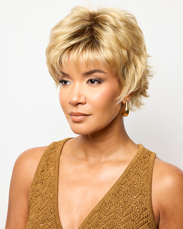 Deliciously enticing short layered look that can be flipped in the back. Wispy bangs. Incredibly light-weight and easy to style. Noriko is well known for their innovative air brushed colors. Only one is available at this price.