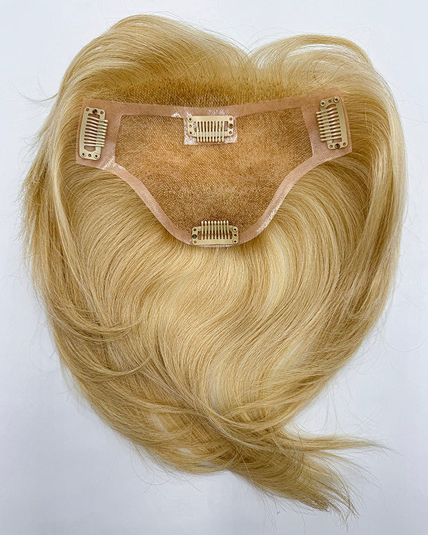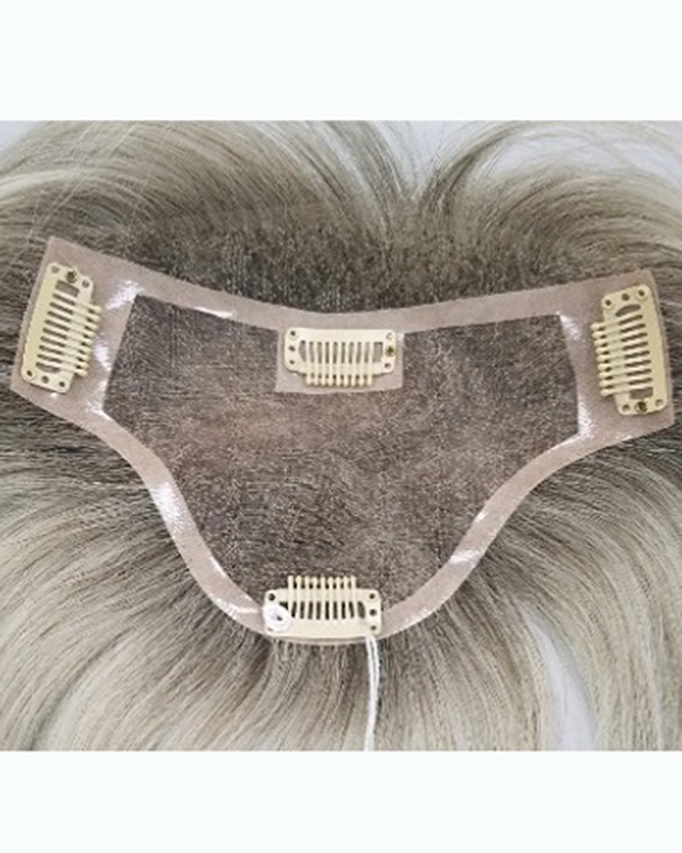 Our Remy HH 10” Topper from our Amore Collection is Remy human hair and short length hair piece. This top piece is 10” hair length and perfectly constructed for comfort. This topper will instantly create natural beauty. It’s Monofilament base and lace front includes soft wire perimeter technology for a perfect fit. The Remy Human Hair 10″ Topper will give you a light, breathable base and provides the ultimate versatility and comfort. Cap Base size is 7" X 5"