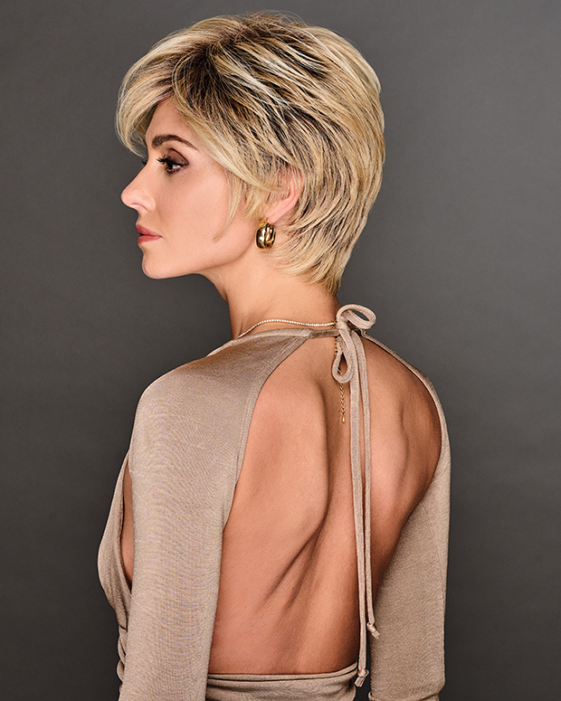 It’s a chic short cut that’s long enough to make it your own. Choppy layers give this style generous volume. Brush smooth and close to the head or piece it out with product for an edgy, modern look. The smart, stacked back is a class act that looks stunning from every angle.