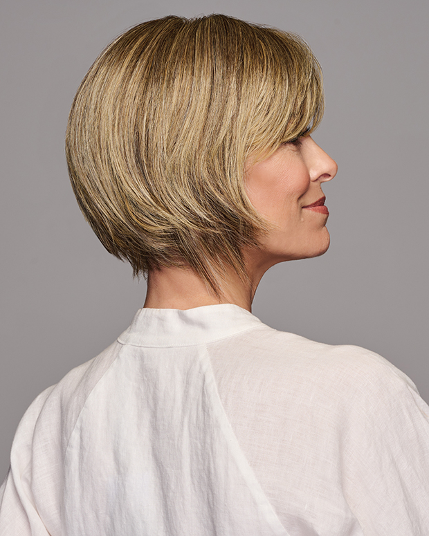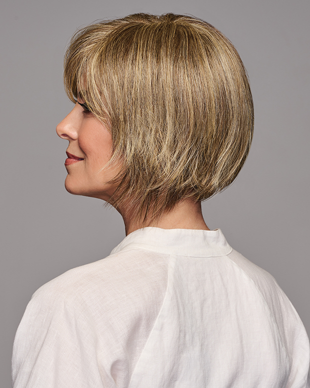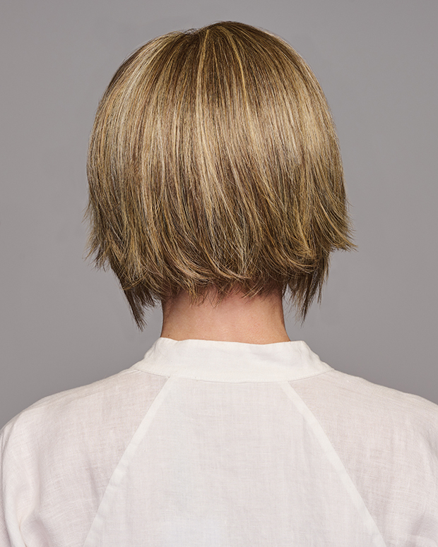 A modern, edgy bob with a trendy, flipped-up back. Wear smoothed down, finger-styled with a piecey texture, or pump up the volume using styling products. The disconnected, longer front and shattered, stacked back stay straight and on point, even in humidity.