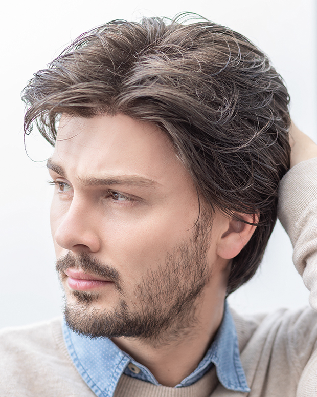 Gary by Ellen Wille is a timeless style with even cut layers and timeless appeal. It offers several features that give him a classic and very natural look. The hand-tied monofilament top creates natural movement and is incredibly soft and comfortable to wear. It gives you the freedom to part the hair where you want. Gary’s extended lace front creates the appearance of a natural hairline allowing for styling off the face. It is pre-styled and ready-to-wear out of the box.