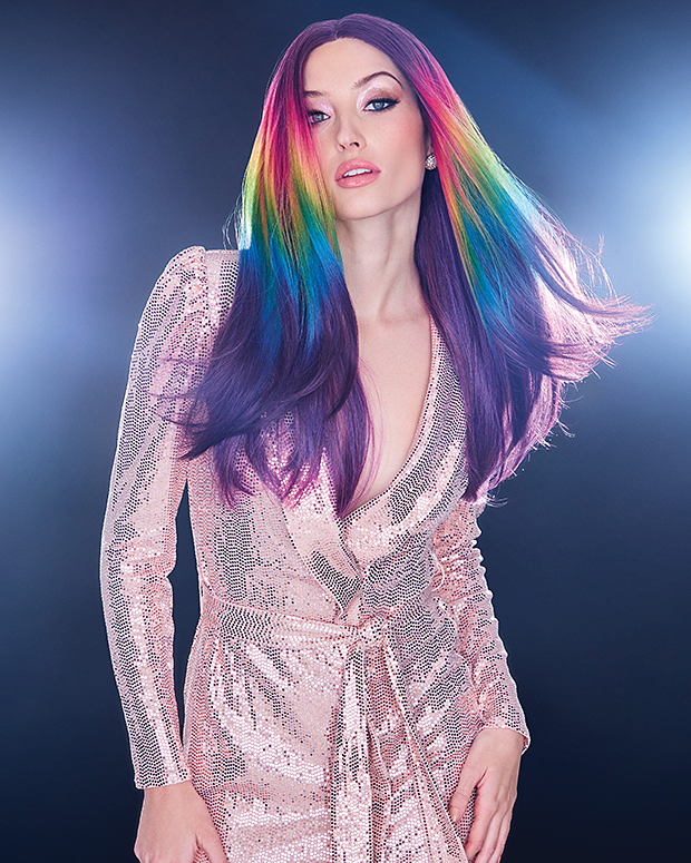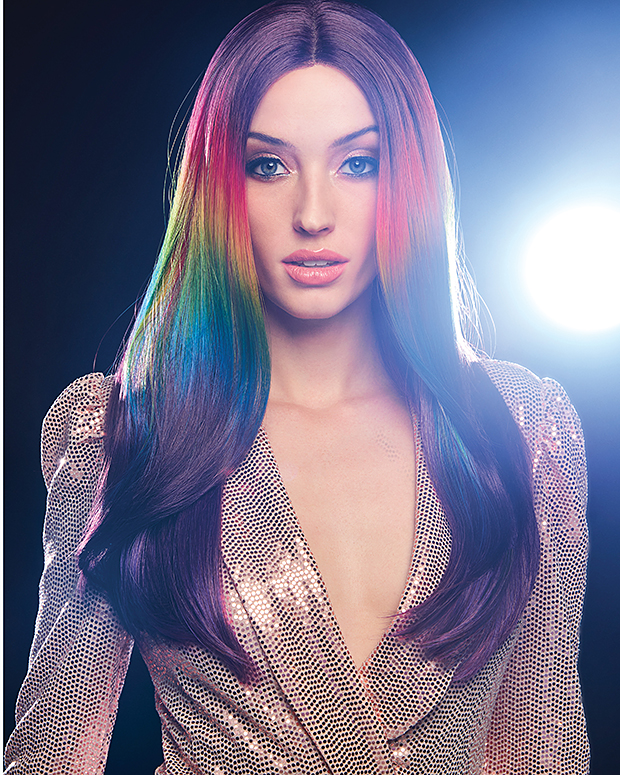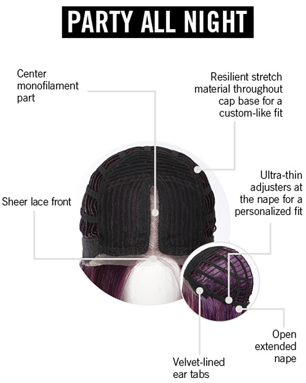 When the sun goes down, this dream ‘do is ready to rave! A prism of iridescent colors shimmers against a deep purple base. The monofilament center part and lace front hairline make the look totally natural. Rock it straight or wavy with heat-friendly Tru2Life fiber.