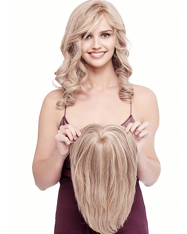 100% Human Hair Full Size Topper with a Monofilament Cap that is Hand Tied.