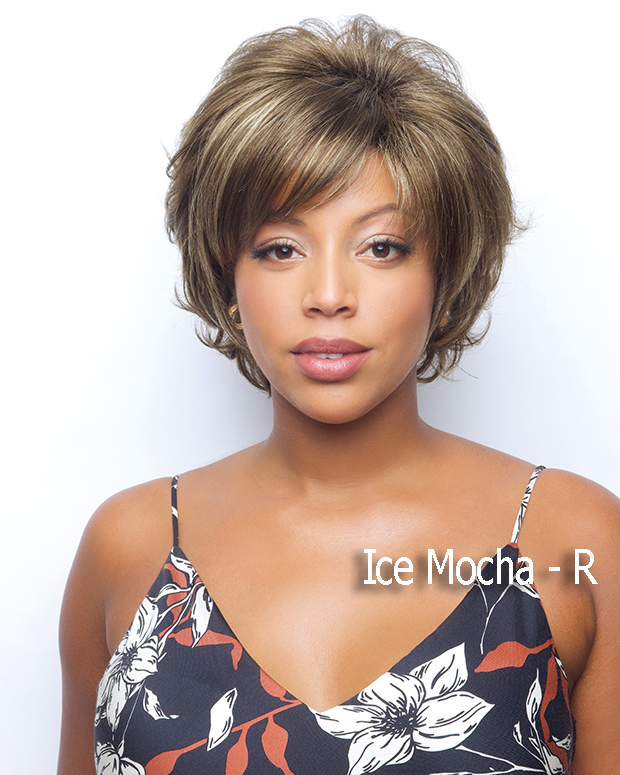 Smooth straight bangs in the front with a full curly back. Sandie from our Noriko Collection is a short-length synthetic wig. This curly ready-to-wear wig is a textured bob with a tousled finish. Sandie is machine made with adjustable tabs in the back nape area to allow a more comfortable fit. The result is a comfortable fit with a natural look that is both fashionable and easy to wear. Only one is available at this price.