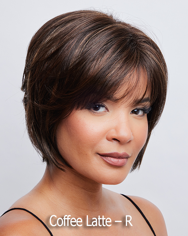 Brown Sable - Dark Chocolate blended with Light Chocolate and Light Chocolate Fringe Bubblegum R - Platinum Pink with Dark Brown Roots Champagne R - Lightest Golden Blonde with Medium Brown Roots Chocolate Frost R - Chocolate Brown Base with Light Chocolate, Light Auburn and Light Blonde Highlights Coffee Latte R - Dark Brown Blended with Medium Light Brown with Very Dark Brown Roots Copper Glaze R - Bronzed Light Brown with Copper highlights and Dark Brown Roots Creamy Toffee R - Two Tones of Light Golden Blonde Blended with Dark Brown Roots Dark Chocolate - Dark Brown Blend with no Highlights Iced Mocha R - Medium Brown with Light Blonde Highlights and Dark Roots Icy Caviar - Off Black with White Highlights Lilac Silver-R Light Grey with Dark Roots and a slight Lilac side cast Marble Brown R - Medium and Dark Brown Blended with Dark Brown Roots Melted Cinnamon - Light Auburn and Light Brown with Very Light Blonde Highlights with Medium to Dark Brown Roots Melted Marshmallow - Medium Honey Blonde Progressing to a Light Golden Blonde Tip with Dark Roots Milky Opal R - Soft Light Opal Blonde Progressing to a Platinum Blonde with Dark Roots Mochaccino R - Light Honey Brown Blended with Light Gold Blonde with Dark Brown Roots Rose Gold R - Gold Blond base with Light Strawberry Blonde Highlights and Dark Brown Roots Sandy Silver - 3 leveled Gray with Light Blonde Front and Medium Smokey Brown with 50% Gray and Dark Brown and Gray Nape Silver Stone - R Light Grey Blend with Dark Roots and White Bangs and Medium Grey Nape Sugar Cane R - Medium Golden Blond Blended with Light Blond Highlights and Strawberry Blond Underlights with Dark Roots