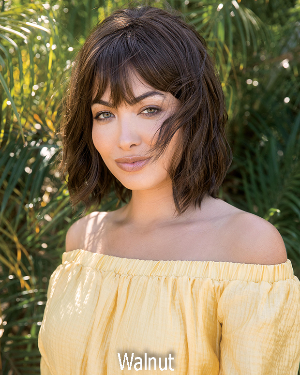 Liana from The Orchid Collection is a mid-length synthetic wig. This wavy ready-to-wear wig is a stunning bob with bangs and soft, shattered waves. Liana is a salon-inspired style with a sleek full fringe both bold and beautiful. This style is effortless and versatile. Liana is machine made with adjustable tabs in the back-nape area to allow a more comfortable fit. The result is a comfortable fit with a natural look that is both fashionable and easy to wear. Only one is available at this price.
