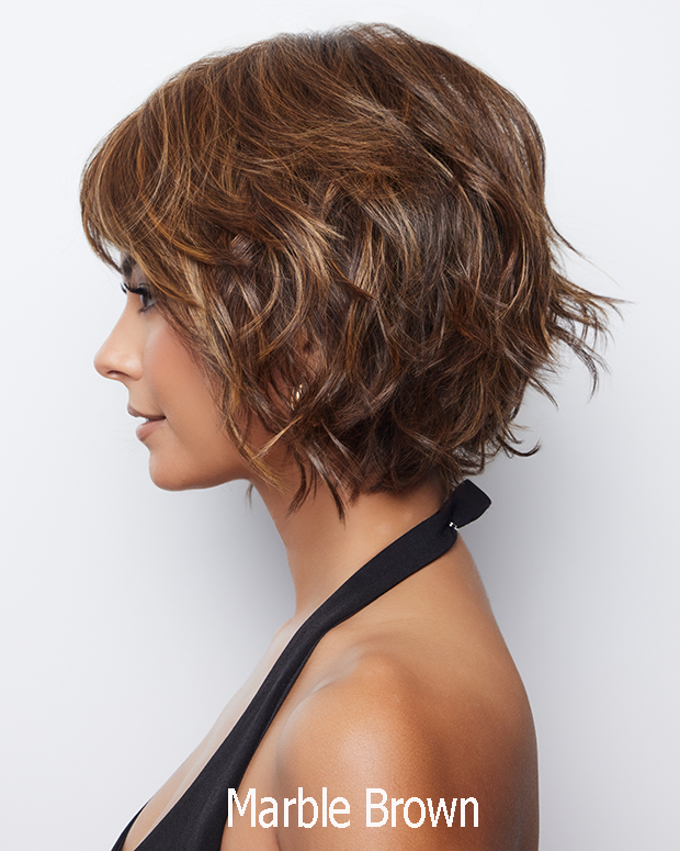 Joss from our Rene of Paris Hi-Fashion Collection is a short-length heat friendly wig. This wavy ready-to-wear wig is a short bob. Discover a fresh and fun wavy style with Joss. This angled cute wavy bob creates a cool, stylish look. The fringe is designed to give you a youthful appearance. It’s going to be your new daily must- have. Joss is machine made with adjustable tabs in the back nape area to allow a more comfortable fit. This result is a comfortable fit with a natural look that is both fashionable and easy to wear. Only one available at this price.