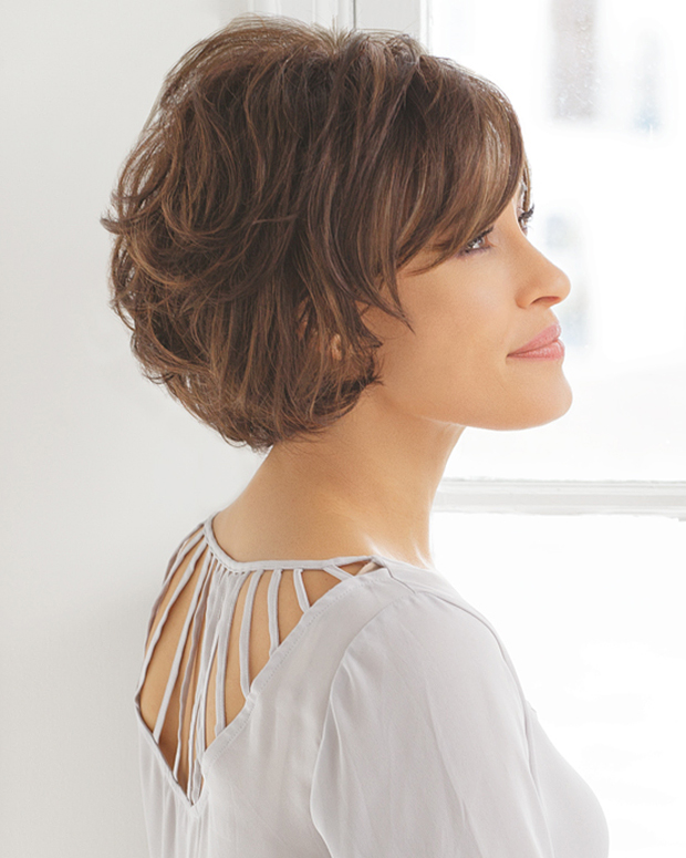The quintessential textured bob. This effortless style and tousled finish features a breathable open wefted cap, wispy layers with soft curl throughout the crown and back and subtle lift at the root for added volume and carefree movement. Only one is available at this price.